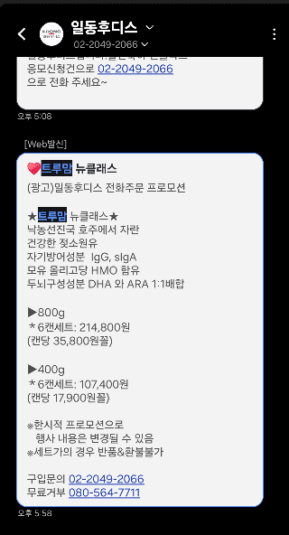 • 나는 트루맘 분유 전화 주문할 때 같이 받음