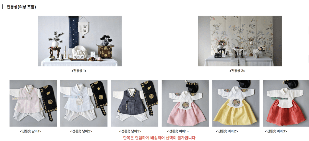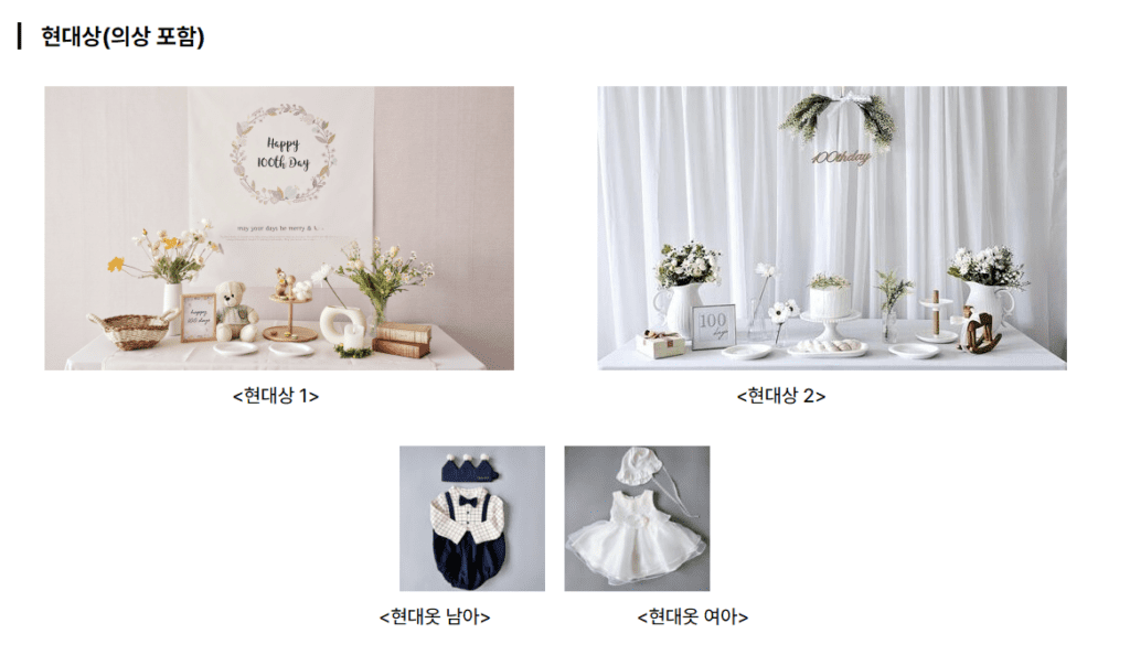 백일상 사업은 아래 지원 항목을 포함했다.
